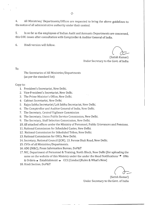 To view PDF, please  Click Here . Source : http://documents.doptcirculars.nic.in/D2/D02est/OM_dated17122018wAnE5.PDF